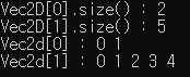 vector 안에 2개의 vector가 삽입되어 있으며 각각의 size 역시 출력할 수 있습니다.