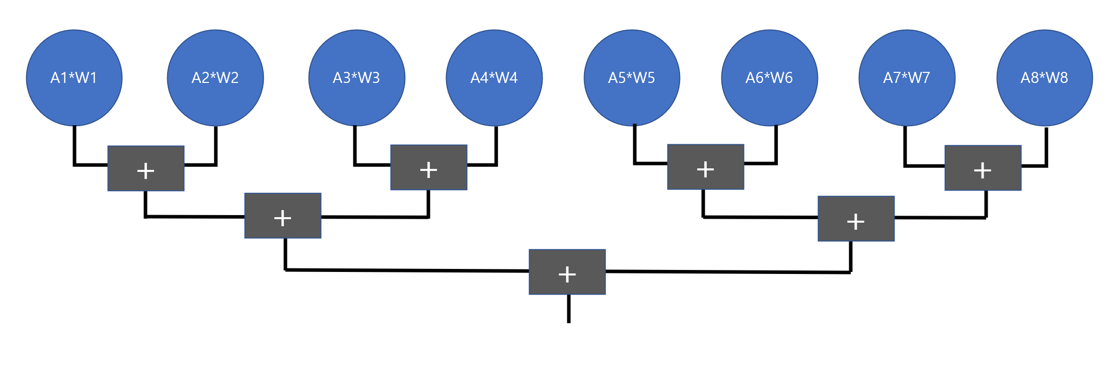 아래의 덧셈 과정을 adder tree 구조라고 합니다.