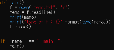 | f.read() | 파일을 문자열 형식으로 읽어서 반환 |