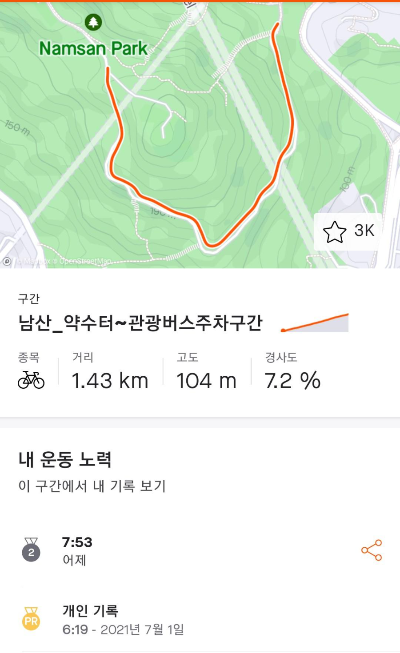 시즌 첫 라이딩 남산 업힐 다녀왔는데, 아무 탈 없이 재밌게 다녀와서 너무 뿌듯하네요