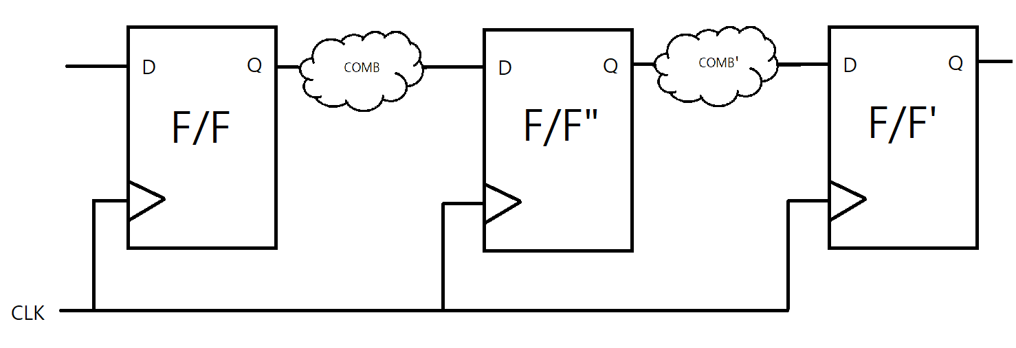 F/F의 출력 데이터가 Comb logic을 통해 바로 F/F'로 입력되는 경우라면 Comb logic을 A 모듈 안에서, 즉 F/F 앞에 위치시켜 combination delay를 줄일 수 있습니다.